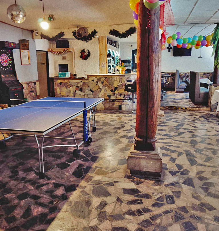 Nasz bar oferuje wyjątkową atmosferę, która umożliwia zregenerowanie sił i delektowanie się chwilą odpoczynku. To idealne miejsce na relaks po fascynujących spacerach i zwiedzaniu urokliwych okolic Karpacza oraz Szklarskiej Poręby. Podczas wizyty w naszym barze możesz zanurzyć się w przyjemnej rozmowie, napić się orzeźwiającego piwa i delektować się smakiem lokalnych trunków. Nasza bogata karta napojów z pewnością zaspokoi różnorodne gusta. Dodatkowo, dla miłośników aktywnego wypoczynku, przygotowaliśmy dostęp do ogólnodostępnego darta (lotki) oraz stołu do ping ponga. To doskonałe rozwiązanie dla tych, którzy chcą połączyć wypoczynek z rozrywką.